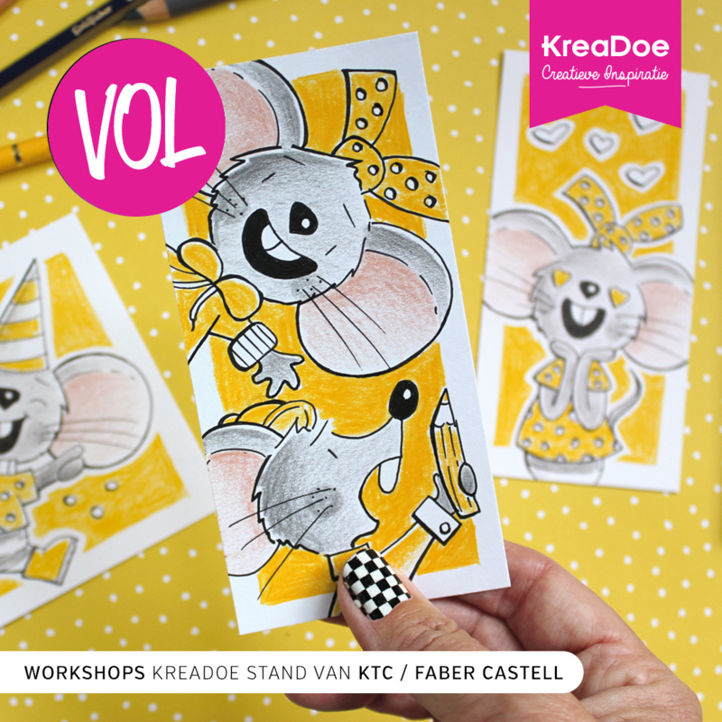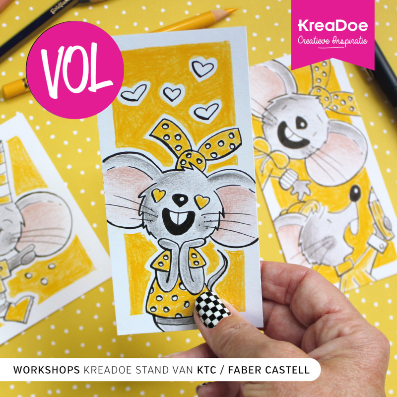 Workshop The cheese lover // Crea Weekend 14.45 uurDit maffe muisje is dol op kaas! Geef hem eens ongelijk haha...! Karin laat je stap voor stap zien hoe makkelijk je Oscar op papier kunt zetten.